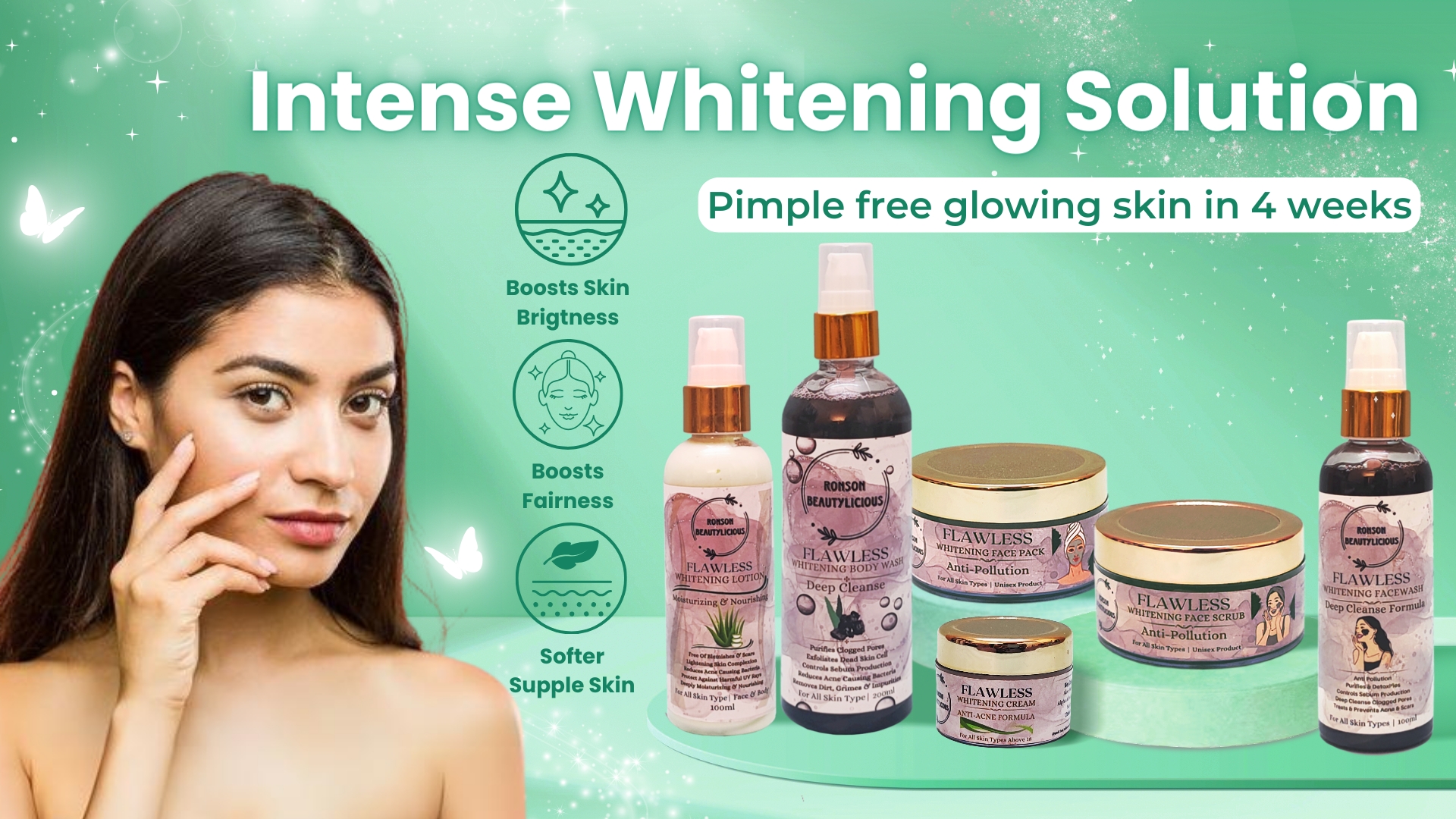 I’d started using Flawless Whitening Combo from 3rd of Jan 2022, & I had seen drastic change in my skin tone. It has not only made my skin glow, also shinny, and bright. It was Difficult for me to trust online products, but m day doesn’t goes with Ronson Beautylicious Products it’s best… #Must try product