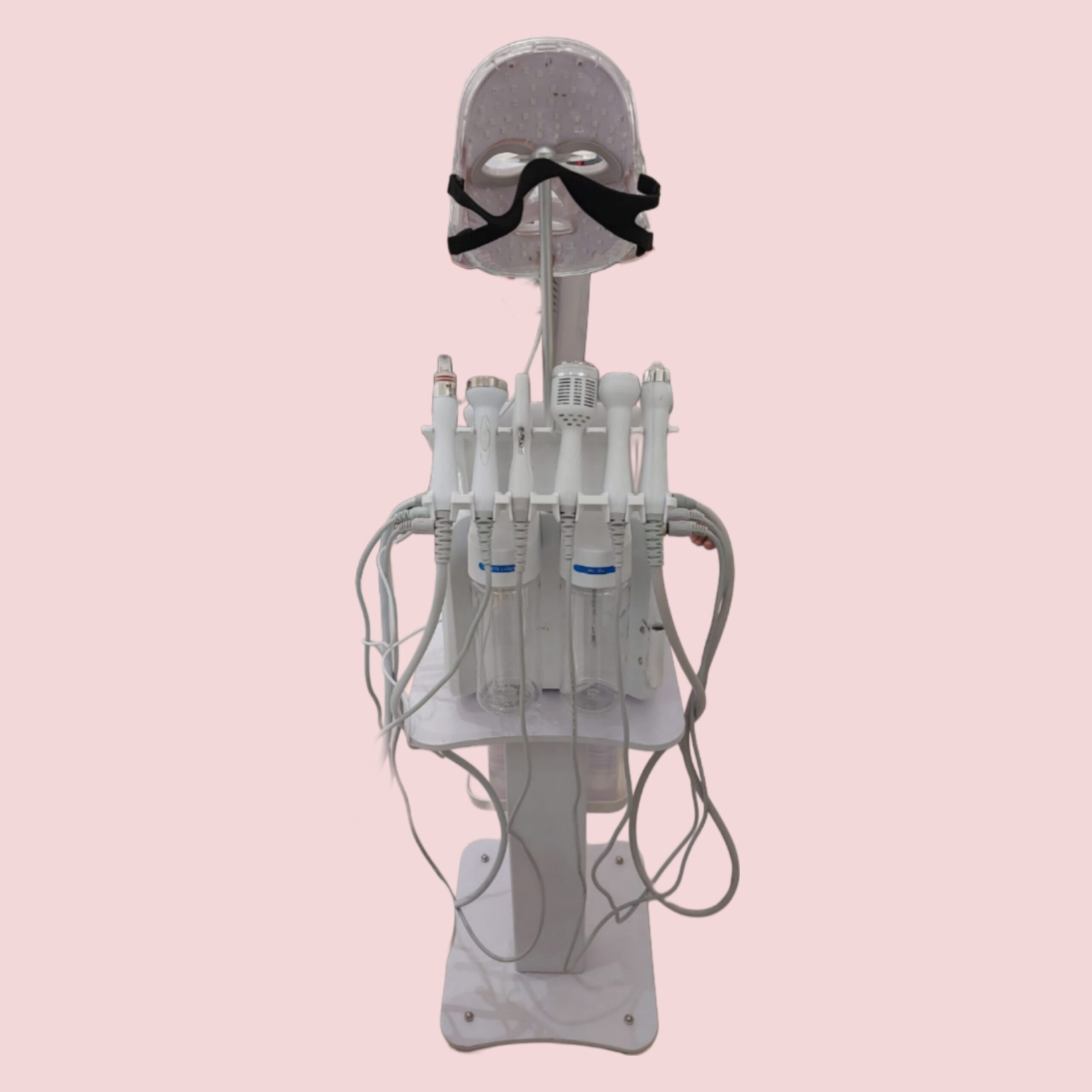 - Reduces acne, wrinkles, and pigmentation with targeted light therapy.