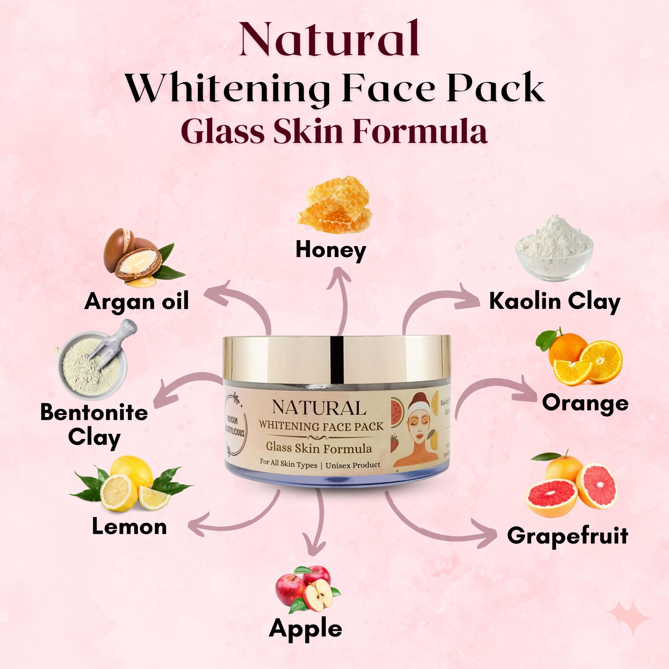 Bentonite Clay: Helps to rid your skin of discoloration and pigmentation developed because of multiple factors. They are also infused with brightening properties that can take advantage with just a 15-minute masking routine.